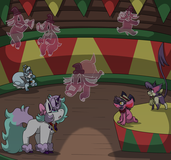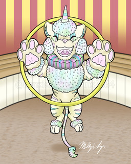 Something for Elephante day over on Neopets, it's a pink Elephante with a pink Snowbunny (both in clown makeup) sitting on its trunk. I was originally gonna color the Elephante and Snowbunny a powder blue shade, but while surfing the 'net for circus style MIDIs to listen to while I color I came across Pink Elephants on Parade from the movie Dumbo; after hearing it I just HAD to make these two little cuties pink. I had some trouble with the background, mainly the hay that's around and within the ring; I just couldn't nail it; so I just gave it to the way it is now.Here's to it getting accepted!