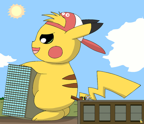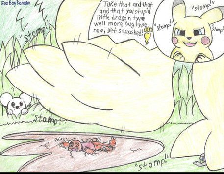 Lawl I just love that "I'm so not impressed" look on Pikachu. x3 hehe like, why being afraid of something that small? x3 Besides, Im starting to notice some pokemons just don't learn the dangers of using Minimize as an evasion move. I guess it could work if you were something quick and agile, but not a Muk.
