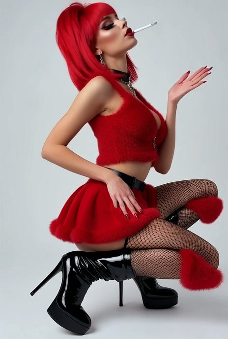 bxxlk - Kevin is wearing a low-cut red fuzzy crop top that [🤖]
