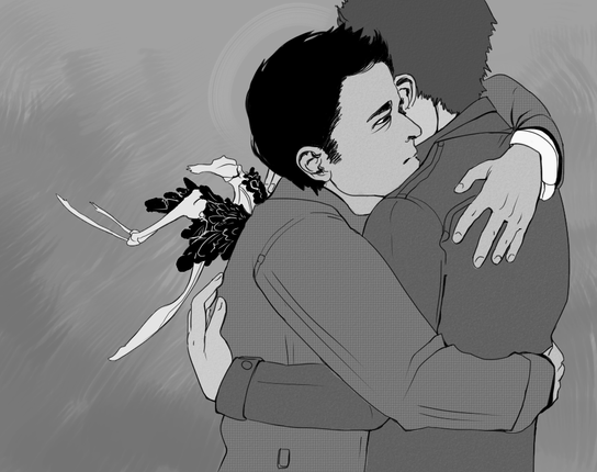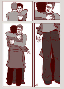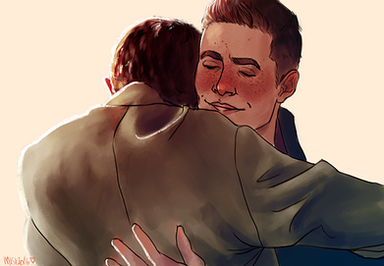 i love how cas is like shocked but sort of glad and even delighted that this has happened (i know you can't see his face but i kinda took that from the way his right hand is ready to hug dean back)...