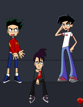 I'm not sure if the whole funhouse idea was communicated effectively by my less-than-stellar artwork, but I think the main idea--fear--might have come through a little better. Other than that, I couldn't have had a better time with this one *^_^* It finally showcases Danny, for one, and I got to put a lot more of my favorite characters in it--Vlad, Lancer, Skulker, and Johnny 13's Bad Luck Shadow. Drawn with Prismacolour pencils, then colored in digitally with a Wacom Graphire tablet.Danny Fenton/Phantom, Vlad Masters/Plasmius, Mr. Lancer, Dash Baxter, Dan Phantom, Skulker, and the Bad Luck Shadow are copyrighted to Butch Hartman.