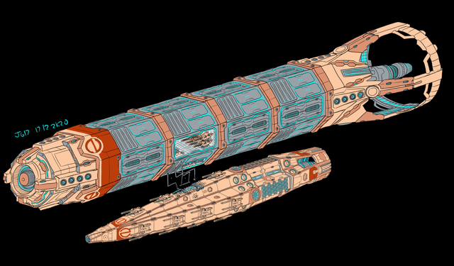#cargo #coloredsketch #conceptart #design #fiction #ftl #future #illustration #scifi #spaceship #starship #transportship #warpdrive #xaikonis #bookillustration #conceptsketch #sciencefiction #cargospaceship