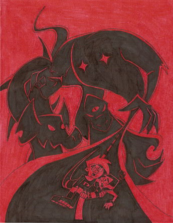 Another scenario based on Ectolime's Reverse Trio AU and a direct sequel to my previous pic.So major pownage ensued and Sam & Co. managed to cut Nocturne and Void!Danny off their endless source of power (everyone's dreams in Amity Park). Time to kick Nocturne back in the Ghost Zone - except that he got Danny under his control because his dreams were incredibly powerful.