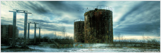Whatever you did in post-processing(assuming you did some) is what really makes this hang together. The contrast of the dirty industrial area below against the tinge of blue sky is really quite interesting. +fav