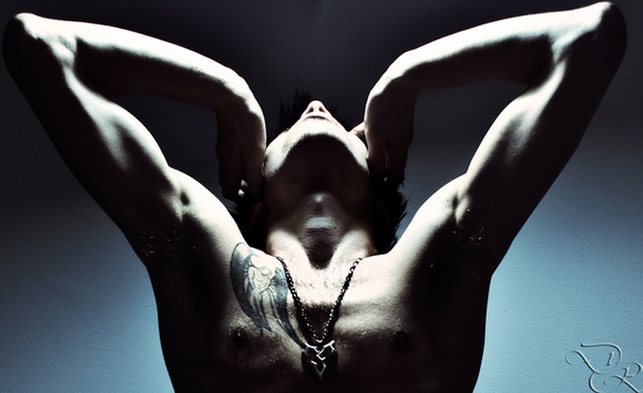 Though the guy is cute, that's far from the point; the pose, the lighting and the face the guy is making looks great... It really captures the sin, the invitation... Fantastic job