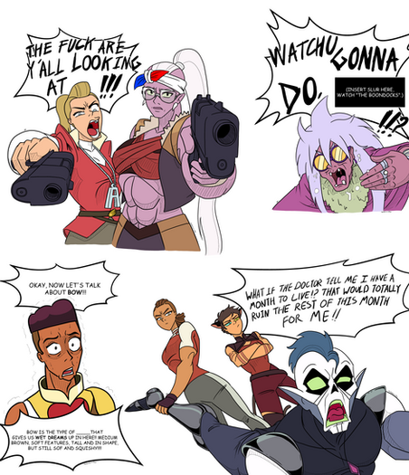 Useful twintails are useful. Have this dumb idea I needed to draw ever since seeing the Hair girl. Not technically BE, but it definitely goes here. Their relationship is so cute, my dude saw literal sparks. That new She-Ra is good, y'all.Related content