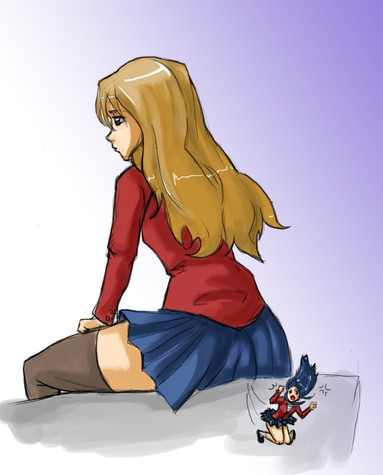 I think my favorite girls in this is the redhead with the flagpole in the middle, who is just plain adorable, (Cute really does come in extra size!) and the glasses-girl playing nice with the little people, because gentle-giantess is just too cute to describe.