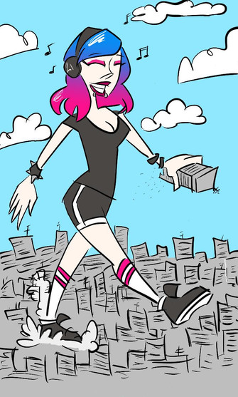 I dig the ganguro looking giantess beating the crap out of a building. Nice work.