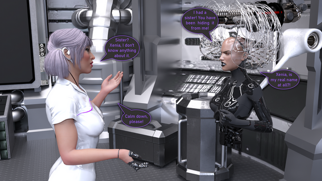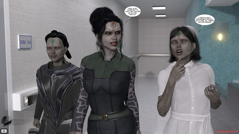 Teaser for Chapter 13 of the Queen's Reign, my poser story published over at www.mccomix.com .Here we see Cassie and a drone she has dubbed "Nurse Rachet" about to reformat another innocent victim. If you're a member you can see the result in the members section.
