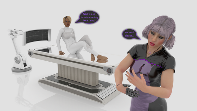 Teaser for Chapter 14 of The Queen's Reign, my poser story published over at www.mccomix.com .Angela is watching Cassie through a floating camera at Delta Station. She mentioned the best was yet to come after the last chapter and it seems we're about to see what she is talking about. Why are those two still human? What does Cassie have planned? Find out in the members section!