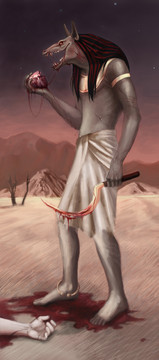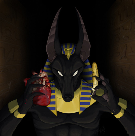 Ammut is the one who eats hearts not Anpu...he weighs them to see who passes on to the afterlife or perishes