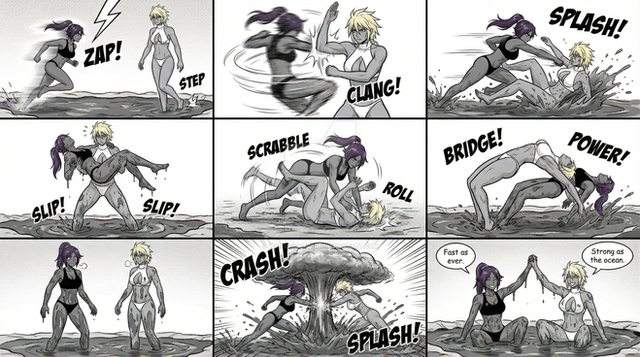 That scene will be longer than the mud scene, I think, so she'll be struttin' her stuff for at least 10-12 pages.