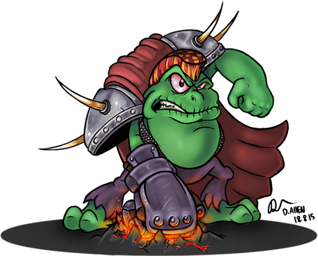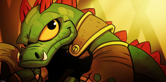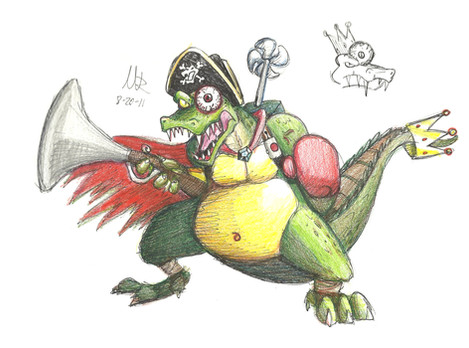 Great energy and colors! I like how your story makes him a potentially sympathetic character. And the Kremlings that care for him, too! To be honest, though, I wouldn't put it past K. Rool to use child soldiers!!! Nice job!