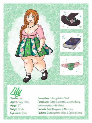 -Is a self-taught seamstress, she makes all of her clothes. Her style is usually found to be a little too eccentric.