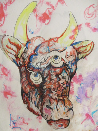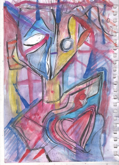 done in English class with those broken little centimeter-long bits of crayola crayons at the bottom of the box. I thought I'd give them their time to shine. There's an inseparable duality in this piece but the figure on the right is much more interesting and well-executed. make sure you see both sides of the face before you stop looking at it.Related content
