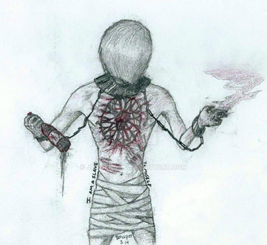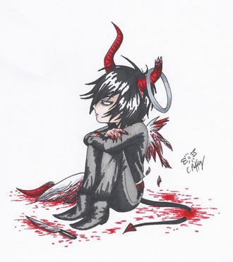 -stares at the floor hiding my sad face- but...but.... -licks the mix of bloods on my hand- why did he leave?.......