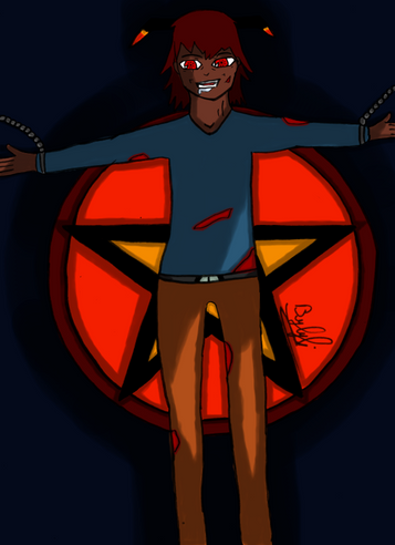 -still completly shut and shocked places my hand over the wound were my blood gets mixed with the demon's dry blood. stares at my hand then at you then at the demon- ..why..