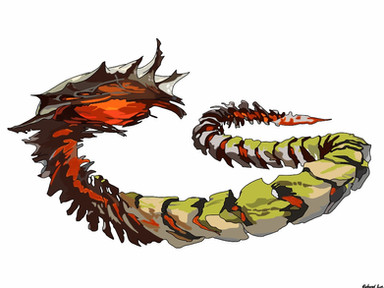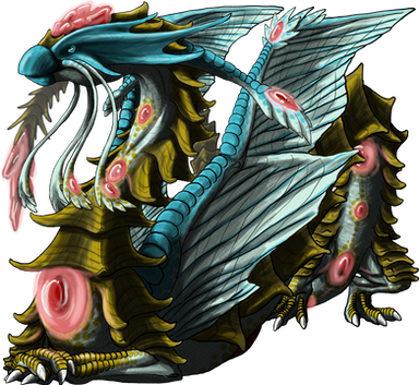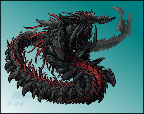 Morbite are a tricky thing. They bury themselves during the day and only hunt at night, where their eyes are adapted for a lack of light. They swim through water by undulating their many wing-like body plates and can reach speeds excessive of 30 MPH in some cases. People sailing in open waters at night are urged to be cautious, as this monster has been known to 'fly' up onto the deck of a ship, knock any meat creatures into the water, then continue its meal in the inky depths. Not a nice thing! D:Art: Henrie!