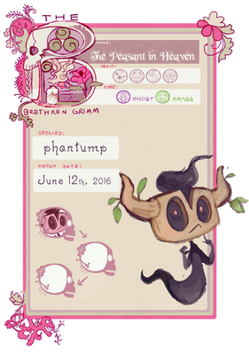 The friendlier of the two Phantump siblings, Tara is much more keen on trying to comfort the distraught than her brother. She's particularly shy, and has a tendency to hide and watch someone for hours before working up the courage to say 'hello'.Name: Tara