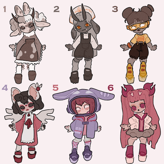 No bidding or anything, all of them are autobuy. if you're interested, click on the links under adopt status for the one you want and you can purchase them! You should automatically get the adopt file (transparent character + minipet png) without a watermark after payment! please comment if you claimed one so I can update the description! (Also I just like seeing who adopted my designs heehee)