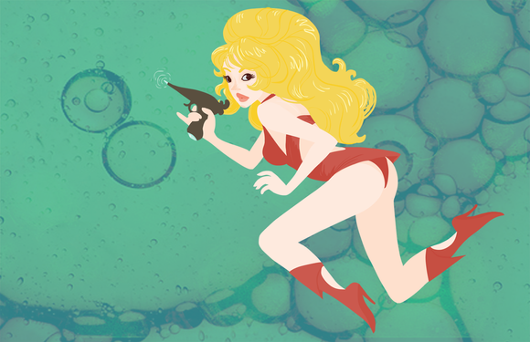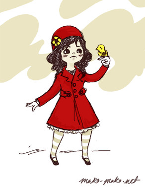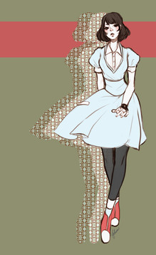 I lovelovelove the style of this - her legs are so cute, and I like the really simplified colored scheme and that the color of the background matches the color in some of her clothing items, it's such a neat effect! Also love the arrows and the cat's expression.