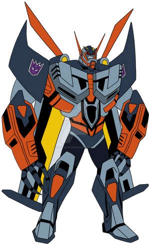 "Alpha Bravo is the latest bot built for Project Aerialbot, and the first to be developed independent of the captured Starscream's blueprints. I don't see much point in an "Aerial"bot who can only hover, but his primeon rotors can slice through more than just air, so I guess he has his uses."--Private Logs of Sentinel Magnus, not for public distribution