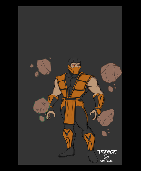 Tremor was a forgettable palette swap ninja in the abbysmal Mortal Kombat: Special Forces game. He is equally hated by MK fans since not only is he just another palette swap ninja, but he also appeared in only one game, the aforementioned MK: Special Forces, which wasn't even a fighting game. I figured Tremor needed a bit of a makeover. I tried to make him look unique from the other MK ninjas, but the more I changed from the basic design, the less he looked like Tremor, so I had to go with the basic ninja motif.weapon concept here [link]