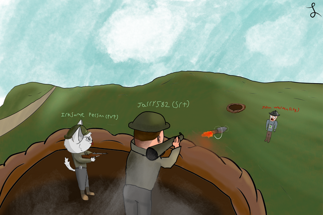 I told him to draw me as the cat. The horrors never end but I stay silly.Artist: Jarry