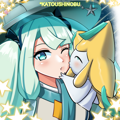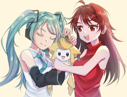 A request fromΒ XxShinyJirachixX of Girlfriend and Miku hugging their jirachi ^^Thank you for requesting!