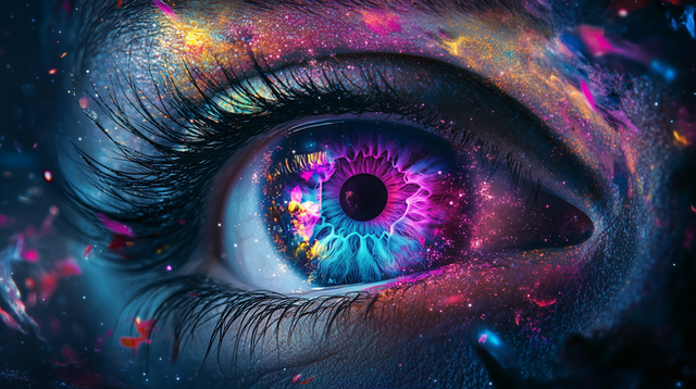 The original image of the eye had a lot of noise, so I tried to denoise it then blur out what remained and resharpen it, and it turned out looking more like a painting than a photo....Created with Affinity Photo.