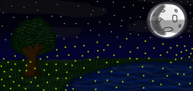 A lonely glowing tree amongst empty fields at night.Made in Affinity Designer