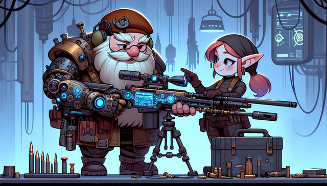 The male guardianβs exoskeleton hummed softly; circuits pulsating with energy drawn from the cityβs power grid. He was a creation of technology - his strength amplified by mechanics; his vision augmented to see beyond human capacity.