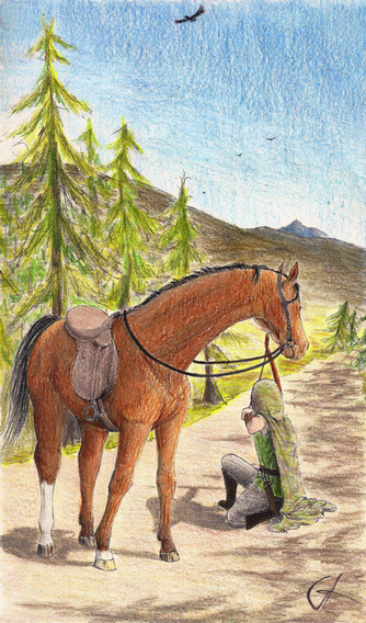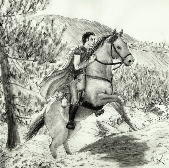 The first time Will got naively on Tugs back without knowing the "password", he "flew" for a short while...Per usual the amazing characters belong to john flanagan (the lucky guy) and the graphite and paper is mine (i.e. the art)