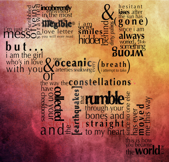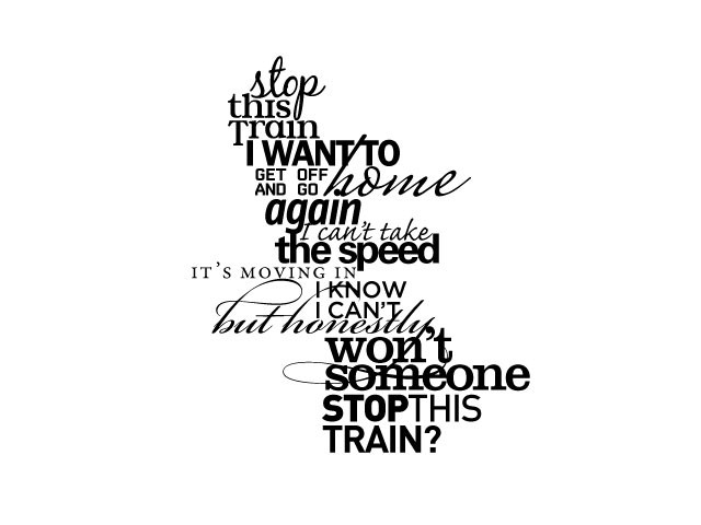 This piece was inspired hugely by [link] and I loved how the wonderful clash of fonts and colours came together and made things look, well, good.I wanted to try something irregular and awkward and out of my usual conformity to the grid. This was a refreshing work, and took longer than I expected. Much more than merely a slapdash, casual assembling of words on the canvas I thought it would be. Colours had to complement, and sometimes had to clash, typefaces had to work well with each other and the whole piece, alignments had to be fiddled with, the downward flow had to be kept. It was wonderful doing it and even more so completing it. It's not perfect - both the piece and the resolutions - but here it is and I hope you enjoy this one.