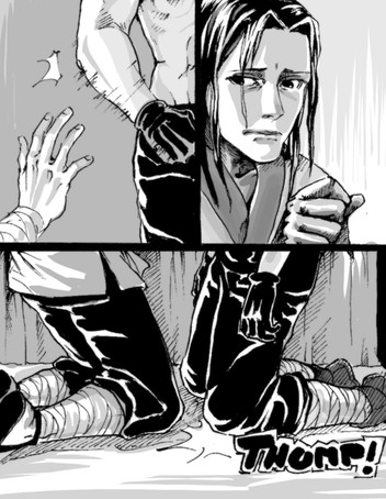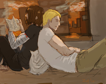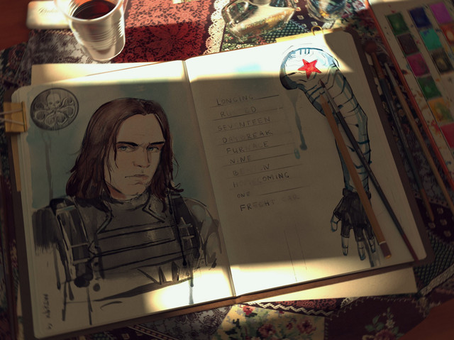Bucky's ponytail and red star on his shirt on adorable! :3 You did a good job drawing him here. I just wish I could read the word bubbles better. The writing ins a little hard to make out. Other then that the pic is great! <3