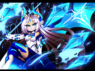 Your full fledged illustrations are always eye-candy and a pleasure to look at! I really like the slight grunge texture that this painting has overall, and the way the painting is focused on the gorgeous character itself (I mean, not much to focus on but damn what a beautiful design!). The blurred out dress between the huge paint strokes of snow give a gorgeous illusion that they are both somehow connected. The facial expression is also fierce and bold showing the similarities between the bitter cold and the ice queen. What a striking, capturing piece!