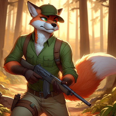 #military #militaryuniform #fox #gun #furry #anthro #ai #assaultrifle #franny #lisichka #stalker #weapon #mimimishki #bebebears #ai_generated_art