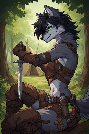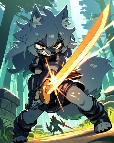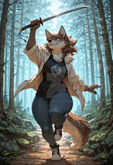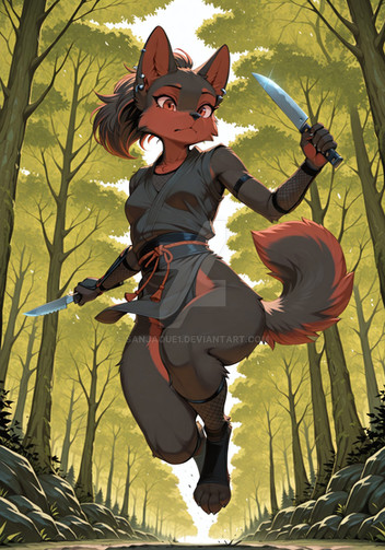 #warrior #dog #ai #anthro #barefoot #canine #dagger #fantasy #furry #weapon #werewolf #winniewerewolf #hotel_transylvania #winnie_werewolf #ai_generated_art