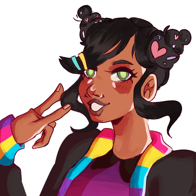 Hey hey! Sooooo guess what game I've been both and playing and watching a bunch of youtubers play as of late. Dream Daddy is such a lovely and fantastic game!!! Anyway, here's a quick lil drawing of Amanda, the coolest kiddo in the world. I super love all of the character designs, but Amanda's is probably my favorite (gotta love that sick bomber jacket). I kind of want to draw Carmensita next, but I'm an increasing lazy and busy gal nowadays, so we'll see.I used good ol FireAlpaca p.s. if anyone knows how to do that white outline thing around the character in FireAlpaca, please bless me with your knowledge, because how I did it, was time consuming and kinda looks rough, so any tips would help out.