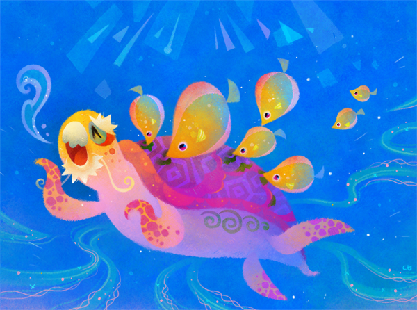 The turtle is really cute (in a weird way); I love the colors.