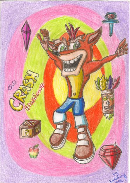 a level of Crash Bandicoot 2, I hated the carnivorous plants XDcolored pencils on sheet
