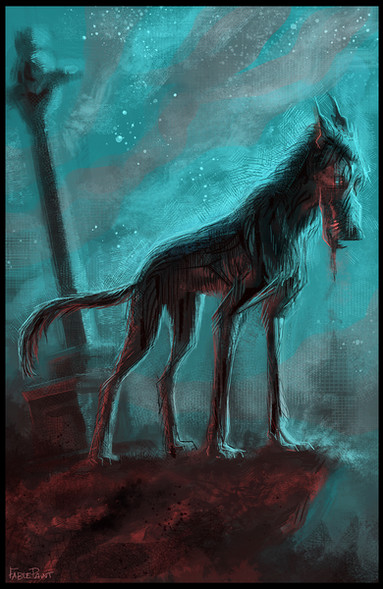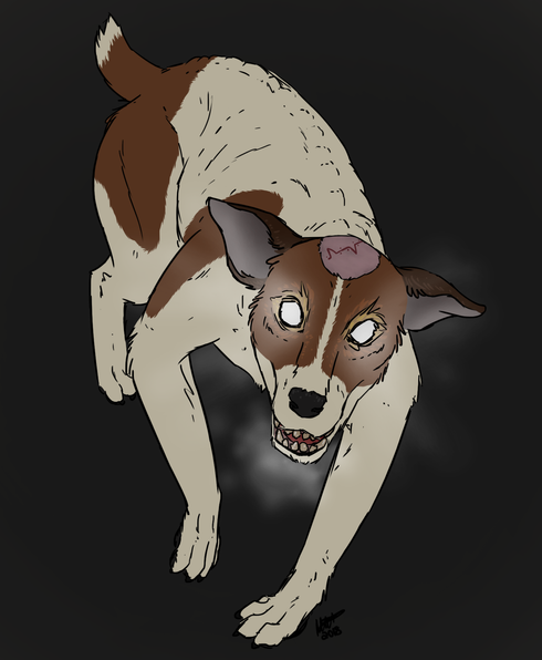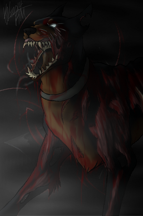 This bit.. I wanted to draw one of my favorite spookies; everyone's ruffled over the window -cerberus jump-scare but I always loved that key-keeping pup outside.