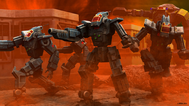 A gold painted lance of the Draconis Combine Mustered Soldiery.They are the Crab, Panther, Sentinel, and Dragon.