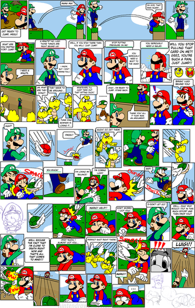 See this is from a GBA game called Game and Watch Gallery 4. The name of this game is called fire, and this is how it goes. There is a castle on fire and Mario and Luigi have to bounce the people who jump out the window into a carrage. Occassionally a bob-bomb will fall out the window and if it lands in the carrage... well the comic pretty much illustrates how that turns out. Do you get it now?