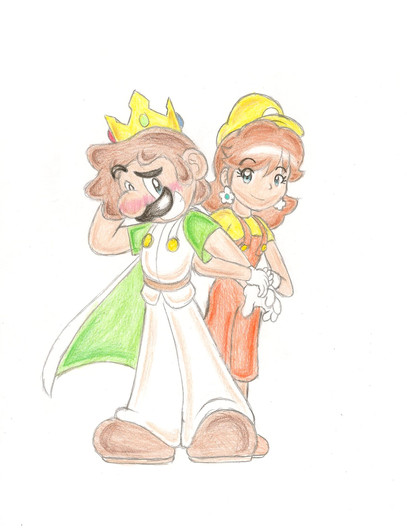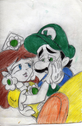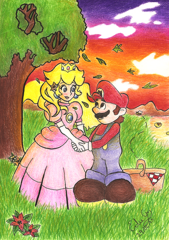 The coloring looks good even if it was rushed. Luigi and Daisy look so cute together in this picture! I really like the colors in the sunset, probably because they are one of my favorite things
