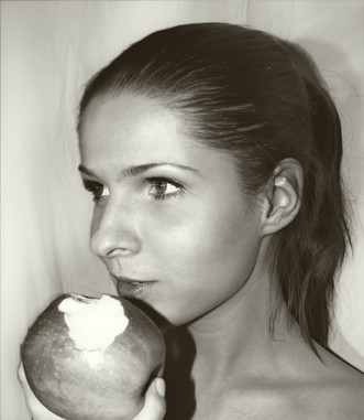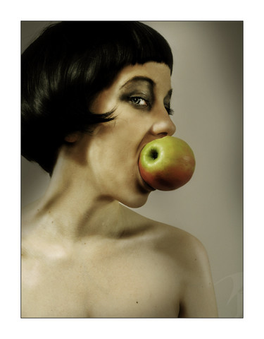 bravo,what a unique portrait......and the skin on you and the pear have an interesting tonal harmony together...beautiful!