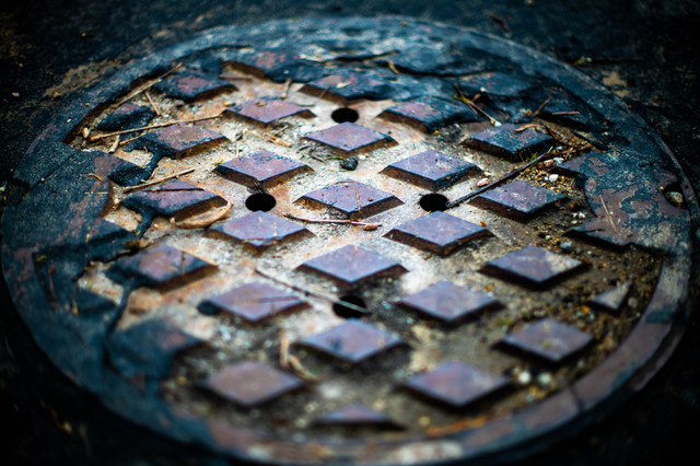 So this manhole thing. When I first saw it on my screen, it looked like the recessed bits, the lighter parts, were actually up, and the darker bits were down. Even knowing this wasn't so, it took a moment for me to see it correctly.
