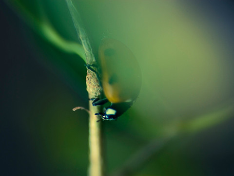 Oh this shot is delightful. I love it, the strong vibrant green with the dash of red of the ladybird (that's what we Brits call them). The depth of field is brilliant to, the scale is thrown totally out of the window as there's nothing to compare them to. Lovely, 'tis going into my wallpapers folder