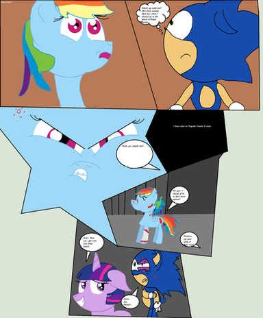 Dang dude you read my mind! You even got the character matches right! I submitted a picture of Rainbow Dash wearing Sonic's apparel like you did ( except her wings weren't tied up) any way great picture! And by the way, I think you mean Sonic Rainboom instead of Pony Boom