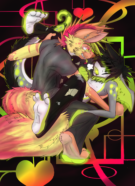Commission for my good friend Burnt of your sonas together, inspired by the music videos for Hazbin Hotel's song Addict!